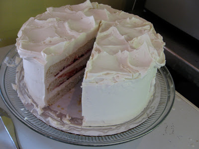 Excuse me, what was I talking about? Oh yes, back to the summery Lemon Raspberry Cake. It's very good. The frosting is fluffy and and not too sweet, the same one that's on the Golden Summer Cake, with the addition of lemon juice.